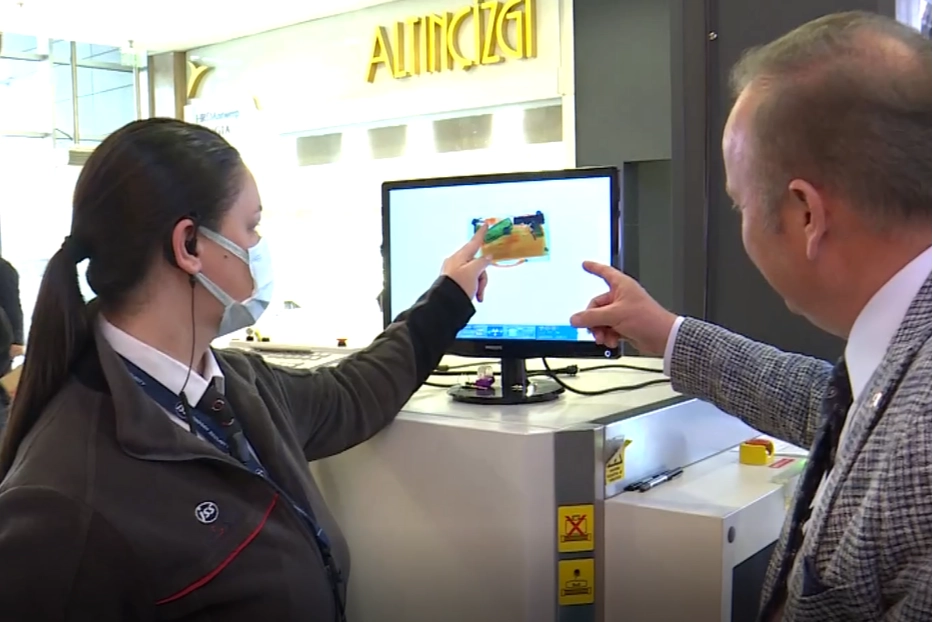 X-ray cihazına çantasını bırakan Yeşilay, daha sonra kimliğini göstererek cihaz başındaki özel güvenlik görevlisine nelere dikkat ettiğini sordu.