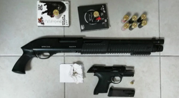 Araçta ve zanlıların üzerlerinde yapılan aramalarda tabanca, pompalı tüfek, bıçak, bir miktar uyuşturucu ve uyuşturucu içme aparatı ele geçirildi.