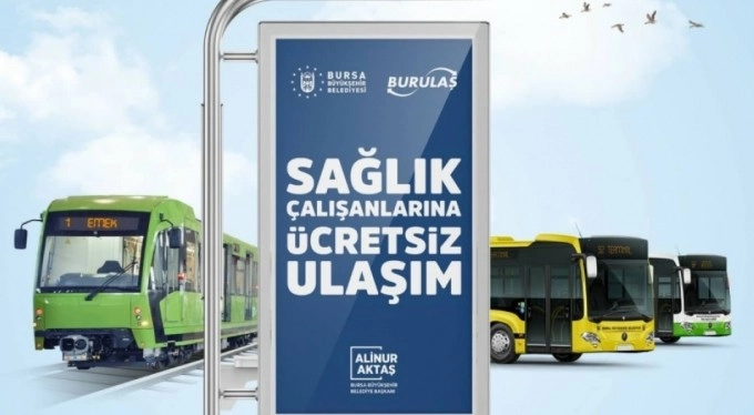 Sağlık çalışanlarının yılsonuna kadar toplu ulaşımdan ücretsiz yararlanabilmesine yönelik önerge, Büyükşehir Belediye Meclisi Kasım ayı toplantısında gündeme alındı. Toplantıda oy birliğiyle alınan kararla, Bursa'daki tüm sağlık çalışanları özel düzenlenmiş kartları ile toplu taşıma araçlarından 15 Kasım - 31 Aralık 2021 tarihleri arasında ücretsiz olarak yararlanacak. Uygulama ilçeler arası taşımacılık yapan hatlar ve turizm hatlarında (F3, E-80) geçerli olmayacak.