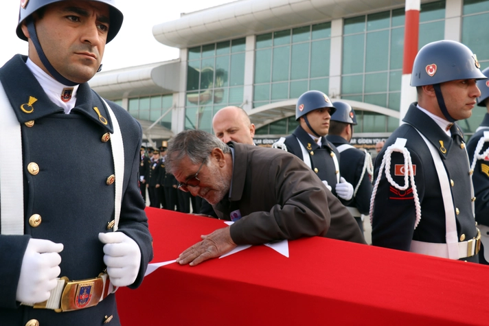 Şehidin Türk bayrağına sarılı tabutu, Ağrı Ahmed-i Hani Havalimanı'ndan alınarak kortej eşliğinde törenin yapılacağı Ulu Cami'ye getirildi.