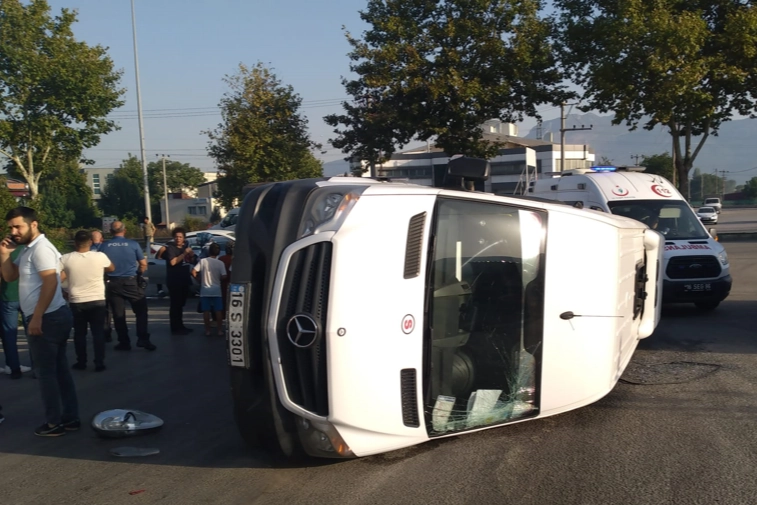 Alınan bilgiye göre Kestel'in Kale Mahallesi Ankara Yolu Mandıras Caddesi girişinde Eyüp Aslan idaresindeki 67 ABU 779 plakalı otomobil ile işçileri taşıyan Sefa Çelik'in kullandığı 16 S 3301 plakalı servis minibüsü çarpıştı.