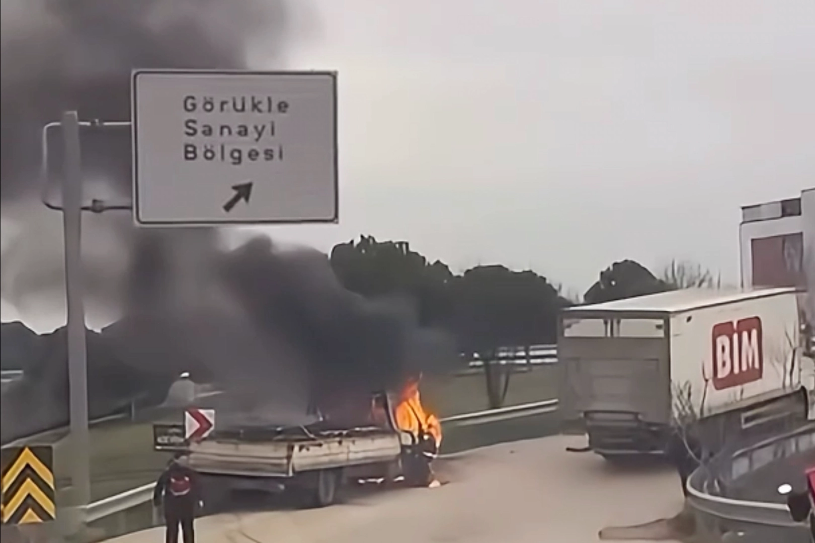 Yangını fark eden sürücü, aracı durdurmaya çalışarak kendisini son anda dışarı atmayı başardı. Sürücüsüz şekilde bir süre ilerlemeye devam eden kamyonet, Görükle dönüş sapağında bulunan bariyerlere çarparak durabildi.