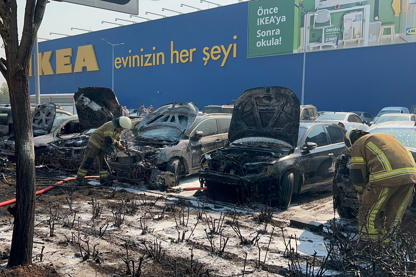 Bursa'daki bir AVM'nin dış otoparkında çıkan yangın paniğe neden oldu. Otluk alanda başladığı belirtilen yangın, kısa sürede otoparkta park halinde bulunan araçlara sıçradı. İlk belirlemelere göre en az 6 araç tamamen yanarak kullanılamaz hale geldi.