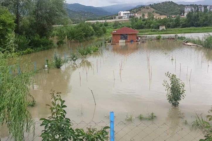 Dağdelen köyü mevkisinde su taşkınlarının yaşandığı ilçede çeltik ekili tarlalar ile üzüm bağları zarar gördü.
