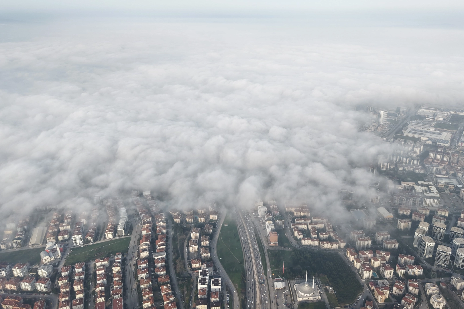 Sis bulutlarının üzerinde seyreden dron kamerası Şehrin bir ucundan diğer ucuna kadar oluşan manzarayı görüntüledi. Film sahnelerindeki gibi bir manzara izleyenleri mest etti.