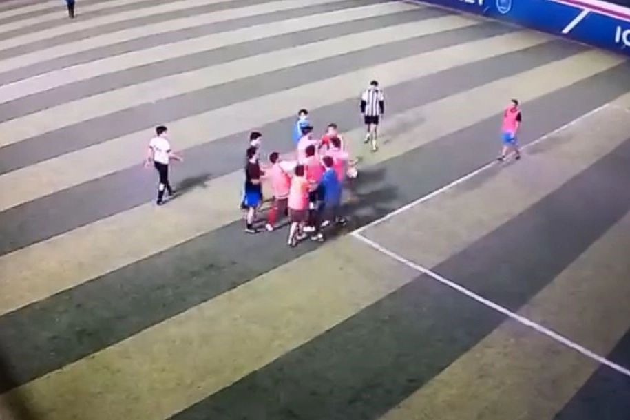 Bursa'nın Nilüfer ilçesinde halı saha maçı yapan iki takım arasında tartışma çıkınca, bazı oyuncular yumruk yumruğa birbirine girdi.