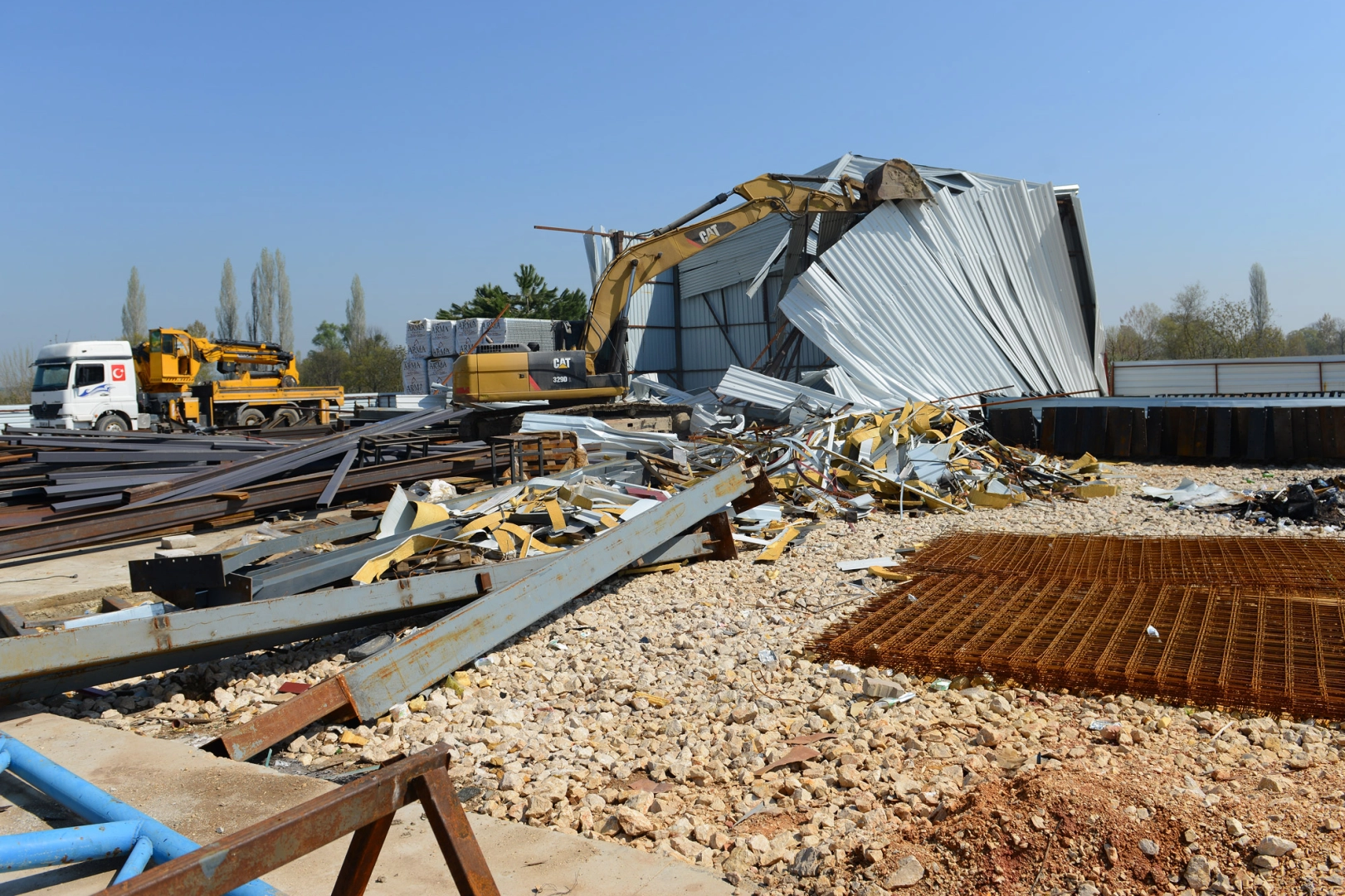 Bursa'nın Nilüfer ilçesine bağlı Tahtalı Mahallesi’nde tarım alanı üzerine yapılan ve üretim faaliyeti gerçekleştirilen kaçak yapı, üçüncü kez yıkıldı. Daha önce iki kez yıkılmasına rağmen yeniden inşa edilen yapı, Nilüfer Belediyesi ekipleri tarafından bir kez daha yıkıldı. Kaçak yapı sahibi, daha önce kendisine yapılan tebligata rağmen kaçak yapıyı boşaltmadı ve üretim faaliyetlerine devam etti. Nilüfer Belediyesi ekipleri, sabah saatlerinde yıkım yapılacak alana giderek, ilk olarak kaçak yapının içindeki makine ve eşyaları tahliye etti. Güvenlik önlemleri altında yapılan tahliye işlemi sonrasında, yıkım ekibi devreye girdi. Beton temel üzerine çelik ve panel malzemeden yapılmış üretim alanı, bir kez daha yıkıldı.