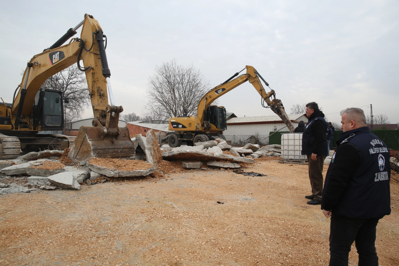 Ekipler daha sonra Tahtalı Mahallesi’ne geçti. Yine tarım alanında bulunan imara aykırı fabrika binası, ekipler tarafından yıkıldı. Çevik kuvvet ekipleri ile Nilüfer Belediyesi Zabıta ekipleri ve Nilüfer Belediyesi sağlık ekipleri yaşanabilecek bir olumsuzluğa karşı alanda hazır bulunurken, yıkımlar sorunsuz gerçekleşti.