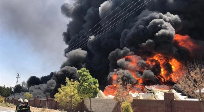 Yangına ekiplerin müdahalesi sürerken, depoda zaman zaman patlama sesi de duyuldu.