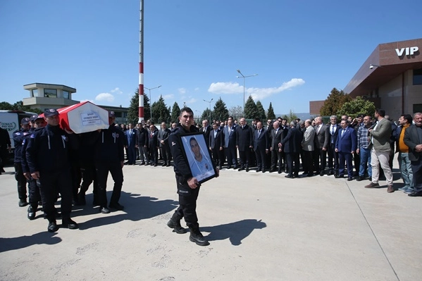 Şehidin Türk bayrağına sarılı tabutu, Bursa Adalet Sarayı bahçesinde düzenlenen törenin ardından Adalet Bakanı Bekir Bozdağ, İçişleri Bakanı Süleyman Soylu ve diğer katılımcılar tarafından omuzlarda taşınarak cenaze aracıyla Yenişehir Havalimanı'na götürüldü.