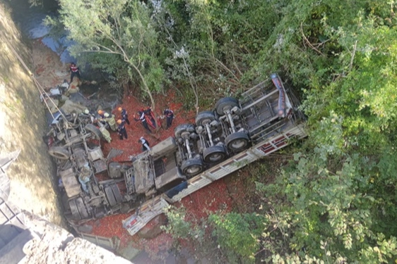 Ekipler, 02 EV 805 plakalı domates yüklü tırın yaklaşık 20 metre aşağıdaki dere yatağına düştüğünü fark edince bölgeye polis, jandarma, AFAD, itfaiye ve sağlık görevlileri sevk edildi.