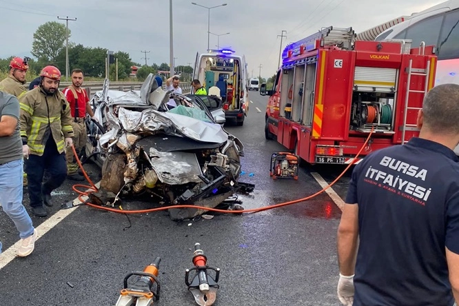 Bursa'nın İnegöl ilçesinde Abbas Ş. yönetimindeki 34 GOA 719 plakalı otomobil, Bursa Ankara kara yolu Kulaca Mahallesi mevkisinde A.Ş. (45) idaresindeki 31 PS 0498 plakalı tıra arkadan çarptı.