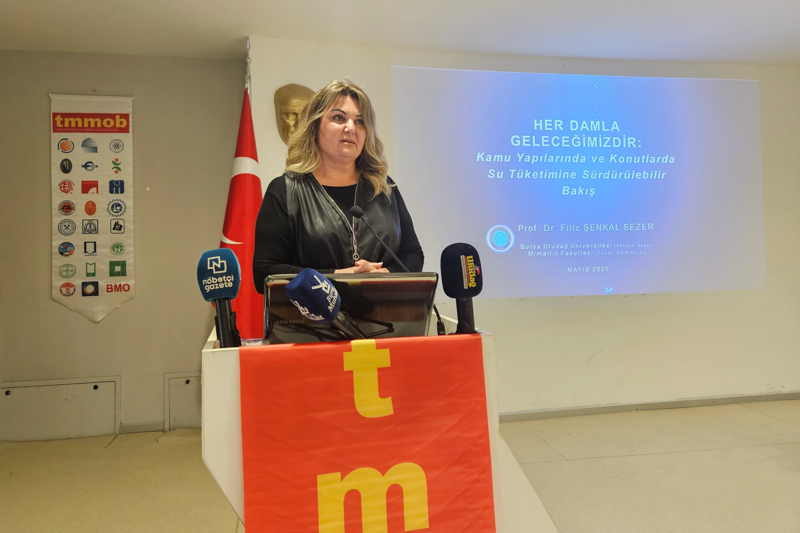 Bursa Uludağ Üniversitesi'nden Yüksek Mimar Prof. Dr. Filiz Şenkal Sezer, sürdürülebilirlik kavramının gelecek nesilleri düşünerek kaynakları verimli kullanmak olduğunu açıklayarak anlatımına başladı. Sezer, dünya üzerinde yaklaşık yüzde 71'inin su ile kaplı olduğunu, bunun yüzde 3'nün tatlı su kaynağı olduğunu belirtti.