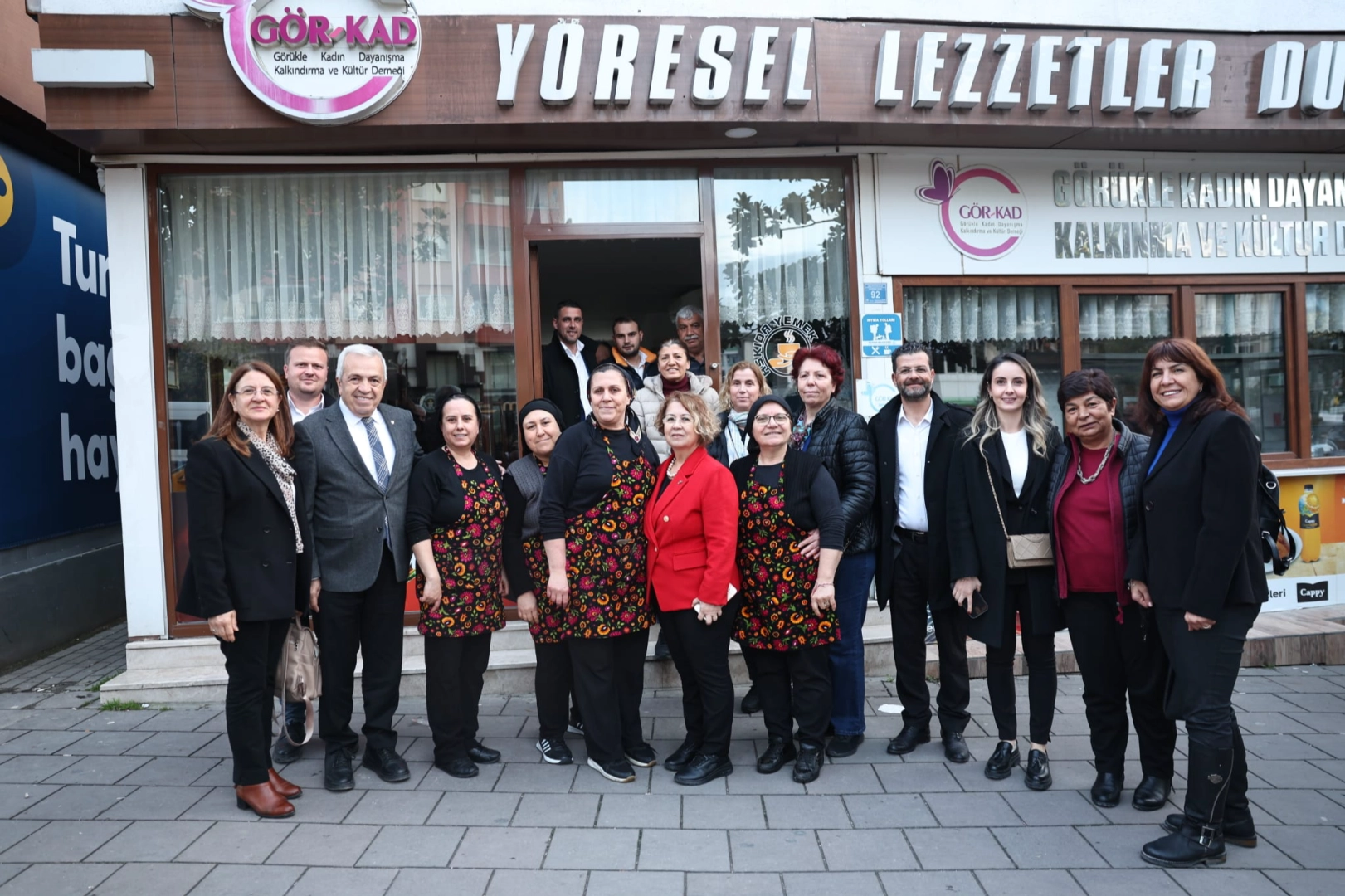 Nilüfer’i Bölgesel Amatör Lig’de temsil eden Görükle İpekspor’a başarılar dileyen Özdemir, daha sonra Görükle Kadın Dayanışma Kalkındırma ve Kültür Derneği’ni ziyaret etti. Dernek başkanı Seher Çavuşoğlu ve üye kadınları, işlettikleri lokantada ziyaret eden Şadi Özdemir, çalışmaları hakkında bilgi aldı. Eşi Nuray Özdemir ile birlikte Seher Çavuşoğlu ve üye kadınları, yaptıkları örnek çalışma için kutlayan Şadi Özdemir, “Bir araya gelip örnek bir çaba göstererek, başarı sergilemişsiniz. Biz, bu çabanıza hayran kaldık. Her zaman yanınızdayız” dedi.