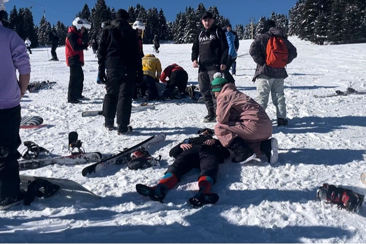 Yarı yıl tatilinin başlamasıyla binlerce kişi Uludağ’a akın etti. Kayak yapanlar, acemiler, kızak kayanlar, poşetle kayanlar ve yürüyüş yapanlar aynı pistte buluşunca "kaza geliyorum" dedi. Binlerce kişinin karın tadını çıkardığı pistte yaşanan zincirleme kayak kazasında 3 kişi yaralandı. İl Jandarma Komutanlığına bağlı Uludağ Jandarma Arama Kurtarma (JAK) ekipleri kayak motosikletleriyle hemen ulaştıkları kaza yerinde yaralı tatilcilere ilk müdahalelerini yapıp ambulanslara kadar taşıdı. Yüzü kan içerisinde kalan kayakçı bir genç kızın soğukkanlı tavrı dikkat çekti.