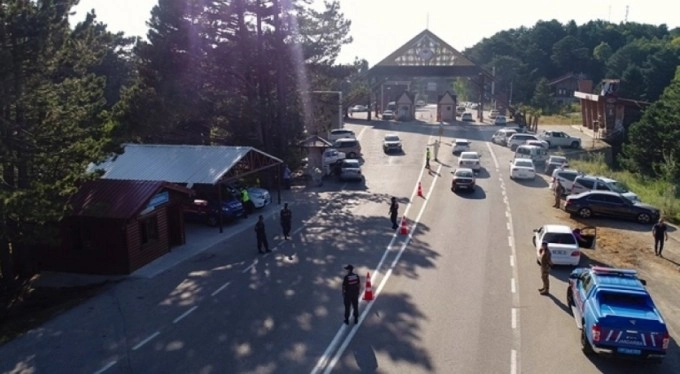 Sıkı denetimler kapsamında Uludağ Milli Parkı girişinde jandarma ekipleri tüm araçları tek tek durdurarak kontrol etti. Milli Parklar personeli de burada ziyaretçilerin uyması gereken kurallar konusunda bilgilendirme yaptı.