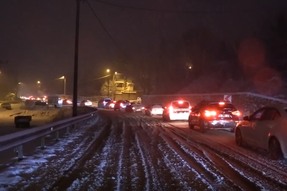 Akşam saatlerinden itibaren yoğun kar yağışının etkili olduğu Uludağ'dan Bursa kent merkezi istikametine seyir halinde olan araçlar yaklaşık 15 kilometrelik kuyruk oluşturdu.
