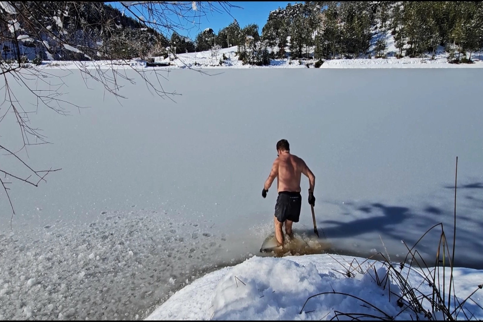 Buzlu suya giren Şentürk, "Bursa şehrimiz, bu doğal güzelliklerin çeşitliliği ile belki de Türkiye'de en önemli şehirlerin başında geliyor. Uludağ eteklerinde doğal göller olduğu gibi göletler de mevcut. Bin 300 metrenin üzerinde bulunan göletler, kış mevsiminde genel olarak buz tutuyor. Buzun altındaki suyun sıcaklığı yaklaşık 4 derece civarında. Bu seviyede suyun tamamen buz tutması mümkün olmuyor. Buzlu sular, vücut sağlığını canlandırmak için ideal bir yöntem" dedi.