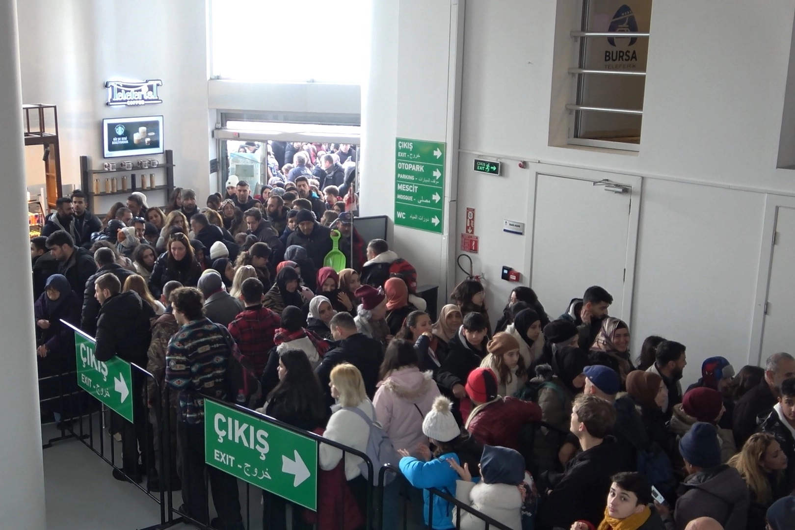 Hafta sonunu Uludağ'da değerlendirmek isteyenler, sabahın erken saatlerinden itibaren teleferik istasyonuna akın etti. Hem trafik çilesi yaşamamak hem de güneşli havanın tadını çıkarmak için teleferiği tercih edenler, büyük şok yaşadı. Genellikle yaşanan yoğunluk sebebiyle kapının dışına kadar çıkan kuyruk, bu sefer mahalle aralarına kadar uzadı.