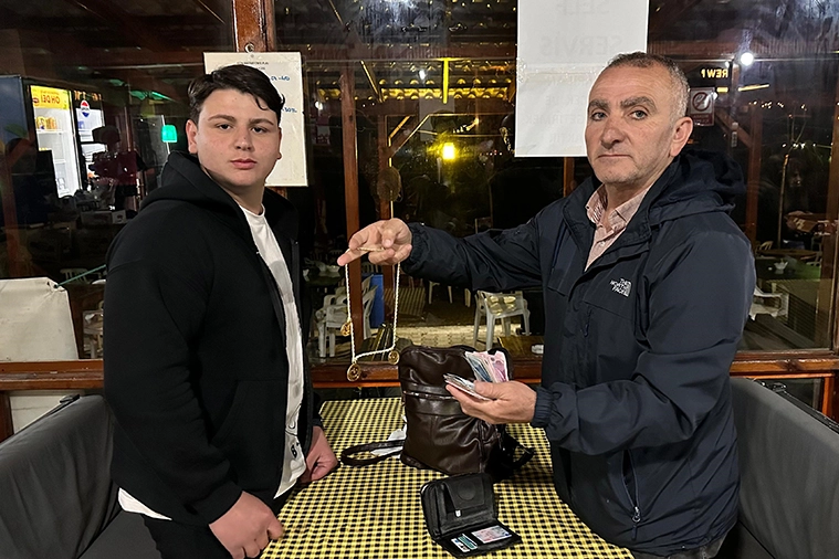 Çay bahçesi işletmecisi Bekir Uslu " İçi para ve altın dolu bir çanta bulduk. İşletmemizde çantanın sahibine kimlik bilgilerinden ulaşarak biraz telefon trafiği sonucunda aileye ulaştık ve arkadaşımızın oğluna teslim ediyoruz." dedi.