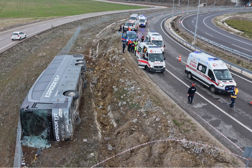 Kaza, saat 16.20 sıralarında Ankara - Niğde Otoyolu Aksaray Alayhan gişeleri otoyol girişi bağlantı yolunda meydana geldi. Edinilen bilgiye göre, Nevşehir’den Ankara güzergahını takip ederek İzmir’e gitmek için yola çıkan Cevdet K. (52) idaresindeki 51 ADY 411 plakalı Kapadokya Vıp firmasına ait Mercedes marka yolcu otobüsü, otoyola girmek için Aksaray sınırları içerisinde bulunan Alayhan gişelerine geldi. Burada otoyol bağlantı yoluna giren otobüs virajı alamayarak şarampole devrildi. 20 yolcu, otobüs şoför ve muavini 3 kişi olmak üzere otobüsteki herkes yaralanırken, kazayı gören diğer sürücüler durumu 112 Acil Çağrı Merkezine bildirdi. İhbar üzerine olay yerine çok sayıda ambulans, Ulusal Medikal Kurtarma (UMKE), İl Afet Acil Durum (AFAD) Müdürlüğü ve jandarma ekibi sevk edildi. Sağlık ekipleri yaralılara ilk müdahaleyi olay yerinde yaptıktan sonra ambulanslarla Aksaray Eğitim ve Araştırma Hastanesi Acil Servisine kaldırdı. Burada tedavi altına alınan yaralıların sağlık durumlarının iyi olduğu öğrenilirken, kazayla ilgili tahkikat başlatıldı.