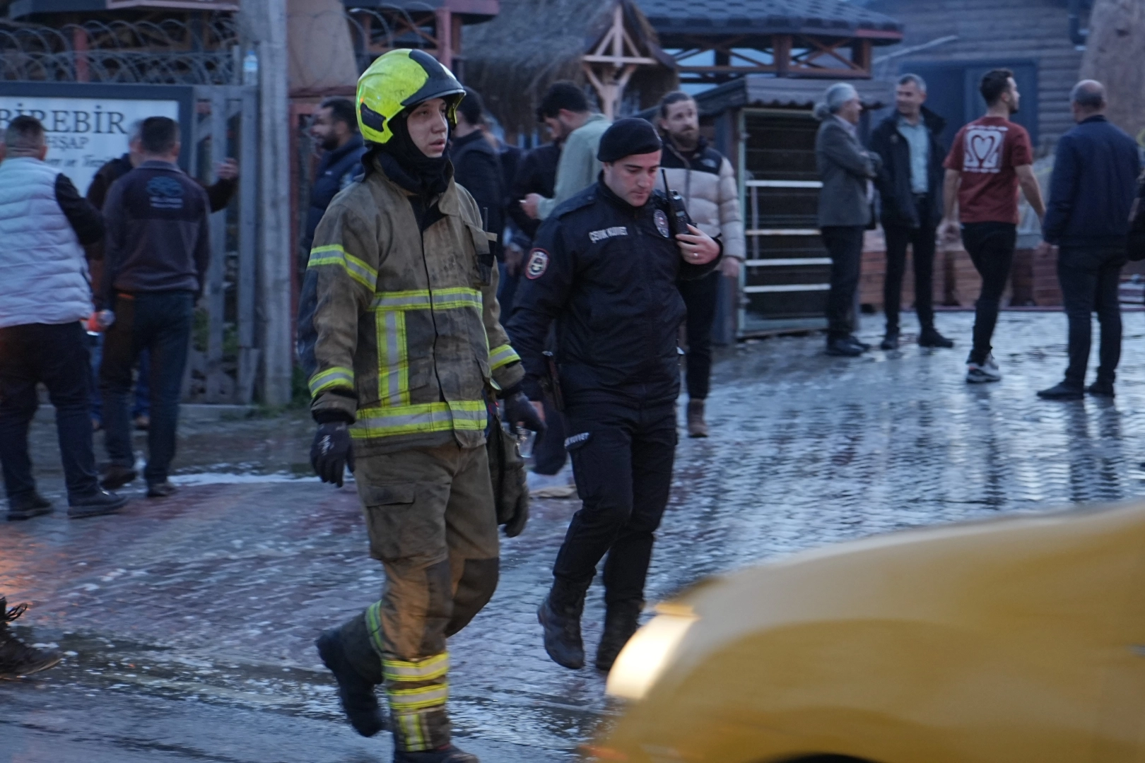 Edinilen bilgiye göre, saat 18.00 sıralarında Nilüfer ilçesi Alaaddinbey Mahallesi Köy Yolu Caddesi üzerinde ahşap ev ve kamelya satışı yapan iş yerinde yangın çıktı. Satışı yapılan ahşap evlerin birinde çıkan yangın kısa sürede büyüdü. İhbar üzerine bölgeye çok sayıda itfaiye, sağlık ve polis ekibi sevk edildi. İtfaiye ekipleri yangına müdahale ettiği sırada iş yeri sahipleri, çevre güvenliği alan polis ekipleriyle tartışmaya başladı. Kısa sürede büyüyen tartışmada 2 kişi polis ekiplerine saldırdı. Olay yerine takviye olarak çevik kuvvet ve yunus timleri sevk edildi. Polise saldıran 2 kişi gözaltına alınırken, yangın itfaiye ekipleri tarafından 1 saatte kontrol altına alındı.