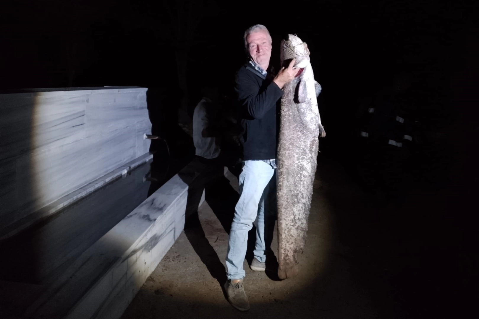 Bursa'nın Yenişehir ilçesinde bulunan Çiçeközü Barajı'nda amatör bir olta balıkçısı, 160 santimetre boyunda 40 kilogram ağırlığında yayın balığı yakaladı.