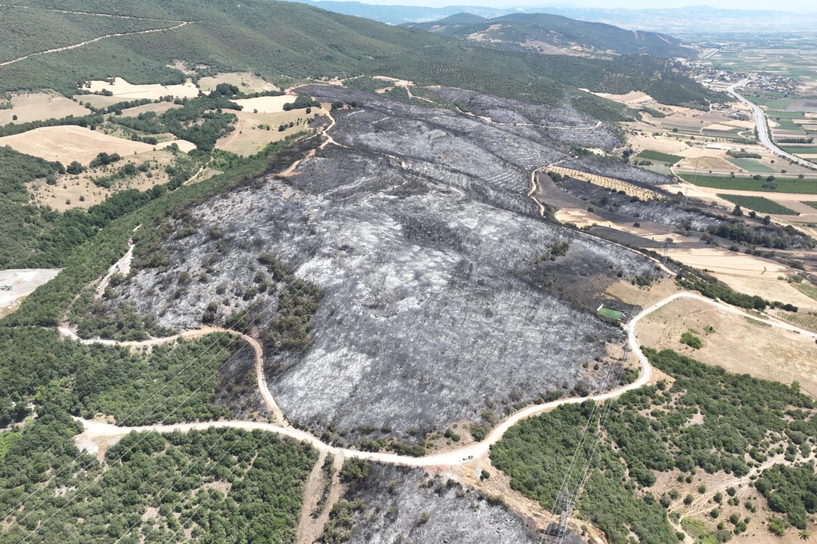 Gündüz gökyüzünden çekilen drone görüntüleri yangının boyutunu bir kez daha gözler önüne serdi. Yaklaşık 500 futbol sahası büyüklüğündeki yeşil alan yangından sonra simsiyah görüntüsüyle dikkat çekti. Orman ekiplerinin yangının üzerinden 20 saat geçmesine rağmen bölgede halen çalışmaların devam ettirdikleri görüldü.