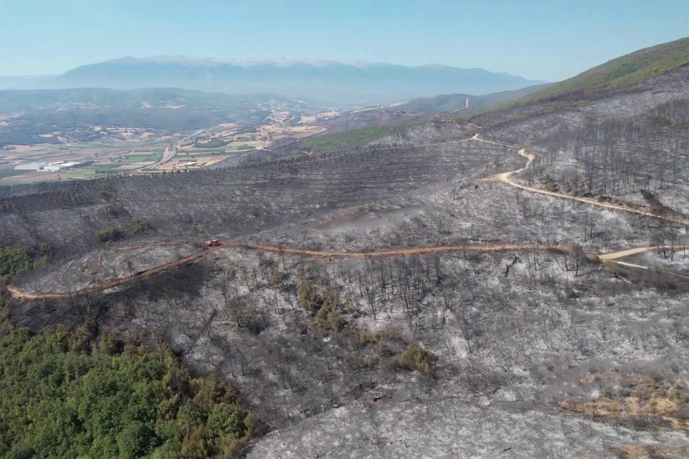 Yangının ardından ortaya çıkan içler acısı tablo ise havadan görüntülendi. Daha dün yemyeşil olan ormanlık alanın yerini gri bir örtü aldı. Yüzlerce ağacın kül olduğu bölgede, geriye sadece yanmış ağaçların gövdeleri ve is kokusu kaldı.