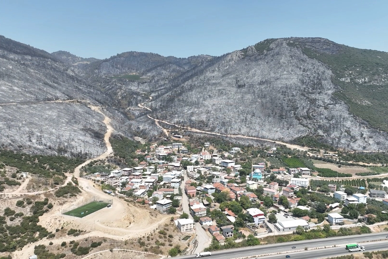 Bölgenin yangından önceki halile yangından sonraki hali yaşanan facianın boyutunu bir kez daha gözler önüne serdi.