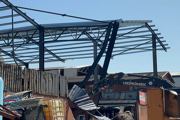 Çevik Kuvvet polisleri ve TOMA'nın geniş güvenlik önlemleri aldığı bölgede yıkımlar sorunsuz olarak gerçekleşti.