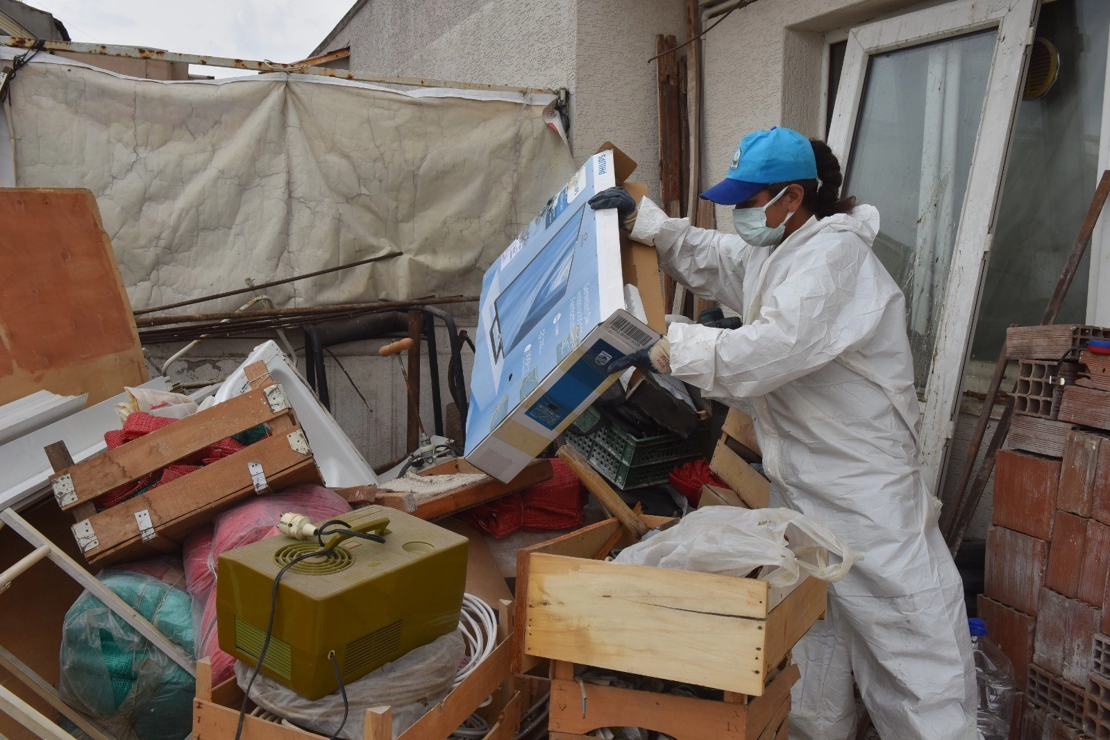 Yapılan çalışma sonucunda kullanılamaz hale gelen evden 4 kamyon çöp çıkartıldı.