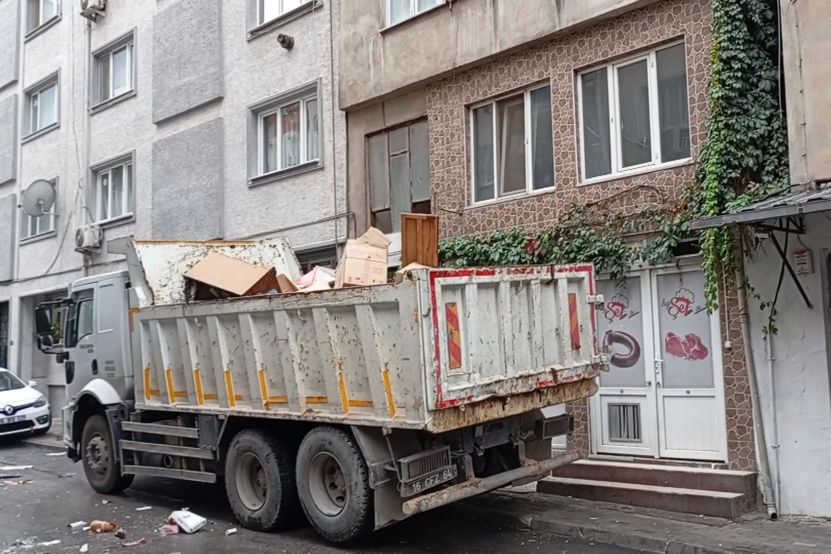 Kadının temizlik sırasında evde olmadığı öğrenilirken, ekipler dairelerden yaklaşık 1,5 kamyon dolusu çöp çıkardı. Kullanılamaz durumdaki eşyalar camlardan doğrudan çöp kamyonuna atıldı.