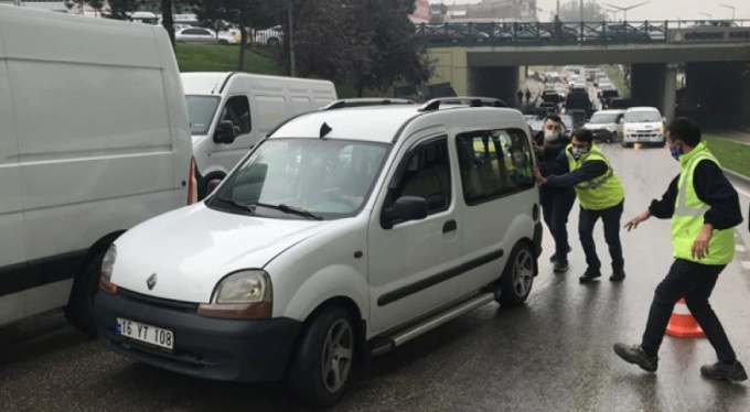 Bursa'nın Osmangazi ilçesinde Zafer Bulvarı'ndan Gökdere mevkisine çıkışta, henüz belirlenemeyen bir araçtan yola motor yağı döküldü.