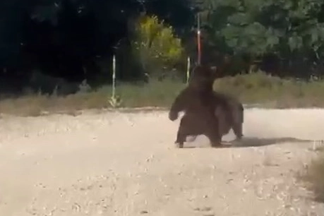 Bursa'da vatandaşlar tarafından kayda alınan görüntüler, izleyenleri şaşkına çevirdi. Bursa'nın Gemlik ilçesi Haydariye Mahallesinde yola inen 2 ayı, yolun ortasında güreşe tutuştu.
