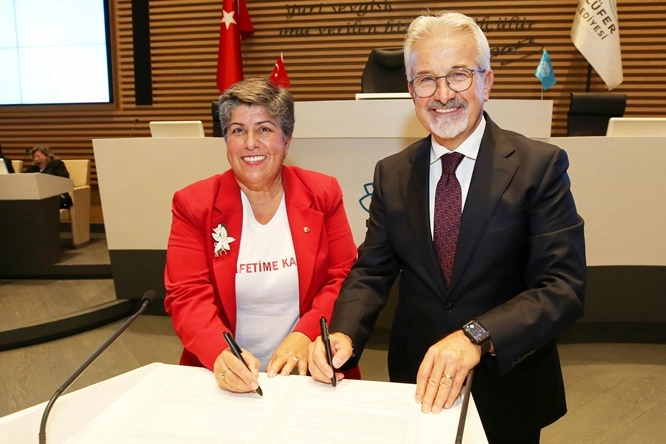Konuşmaların ardından Nilüfer Belediye Başkanı Turgay Erdem ile Türkiye Kadın Dernekleri Federasyonu Başkanı Canan Güllü, Acil Yardım Şiddet Hattı protokolüne imza koydu.