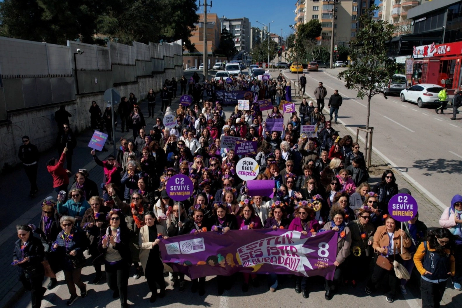 Nilüfer Belediyesi ve Nilüfer Kent Konseyi iş birliğiyle 8 Mart Dünya Kadınlar Günü kapsamında düzenlenen yürüyüşte bir araya gelen kadınlar, eşitlik, barış ve adalet taleplerini dile getirdi.