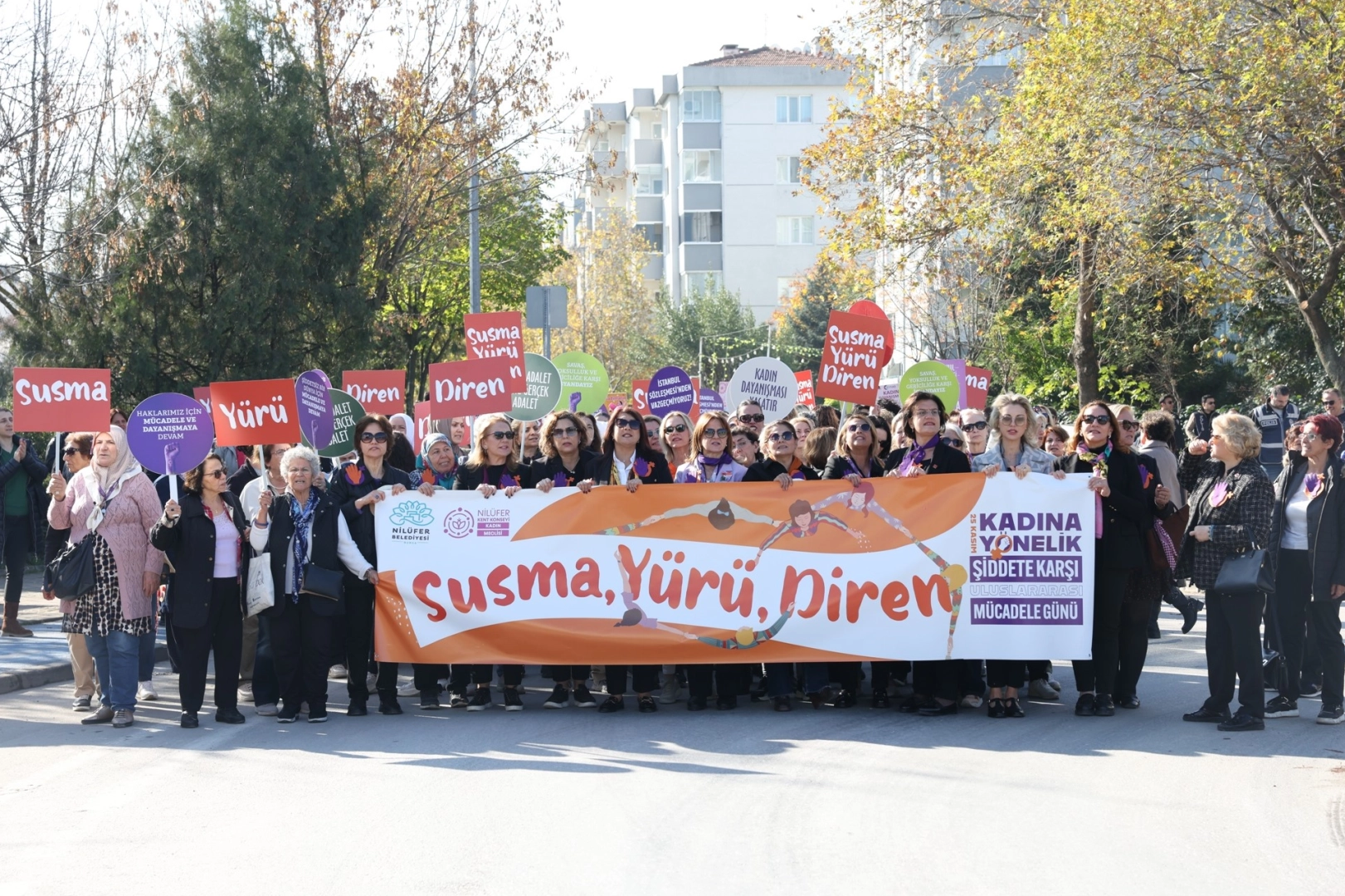 Nilüfer Belediyesi ve Nilüfer Kent Konseyi, 25 Kasım Kadına Yönelik Şiddete Karşı Uluslararası Mücadele Günü’nde farkındalık oluşturmak amacıyla yürüyüş ve söyleşi düzenledi. "Susma, yürü, diren" sloganıyla gerçekleştirilen etkinlikler, kadına karşı şiddete dikkat çekmek için Nilüfer'in farklı noktalarında bir araya gelen kadınların güçlü mesajlarına sahne oldu. Nilüfer Kent Konseyi önünden başlayan yürüyüş, Nilüfer Belediyesi Halk Evi önüne kadar sürdü. Yürüyüşe Nilüfer Belediye Başkan Yardımcıları Serpil Altun, Bukle Erman, Zerrin Güleş ve Şirin Arıbaş, Nilüfer Kent Konseyi Genel Sekreteri Doç. Dr. Elifhan Köse Çal, Nilüfer Kent Konseyi Kadın Meclisi Başkanı Tülin Demir ve Nilüfer Belediye Başkanı Şadi Özdemir’in eşi Nuray Özdemir katıldı. Nilüfer’deki kadın derneklerinin temsilcileri ve çok sayıda kadın da yürüyüşte yer aldı. Kadınlar taşıdıkları pankartlar ve attıkları sloganlarla kadına karşı şiddete ses yükseltti. Kadınların yürüyüşüne çevredeki vatandaşlar da alkışlarla destek oldu.