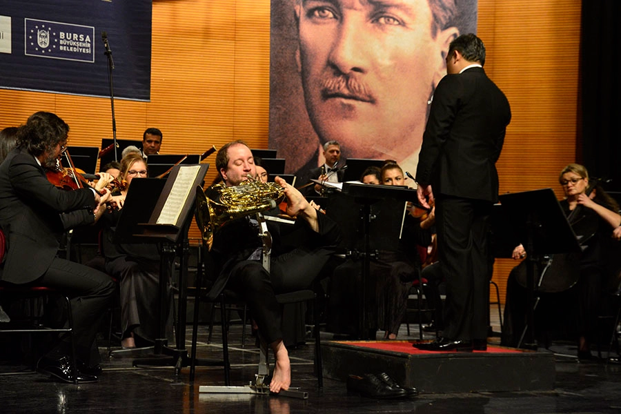 Konserde grup, "Çanakkale Türküsü", "Korno Konçertosu No:1", "Senfoni No:1 Op.11" gibi eserleri BBDSO eşliğinde seslendirdi.