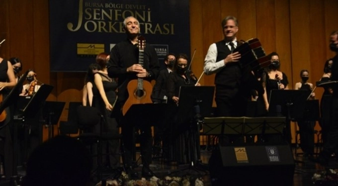 Gecede, Astor Piazzola'dan "Bandoneon Konçertosu" ve Roland Dyens'dan "İki Gitar Konçertosu" gibi eserler BBDSO eşliğinde seslendirildi.