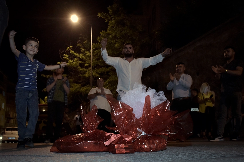 İkramlarını alan damat tarafı geri dönüyor ve bu ikramlar hep beraber yeniliyor.