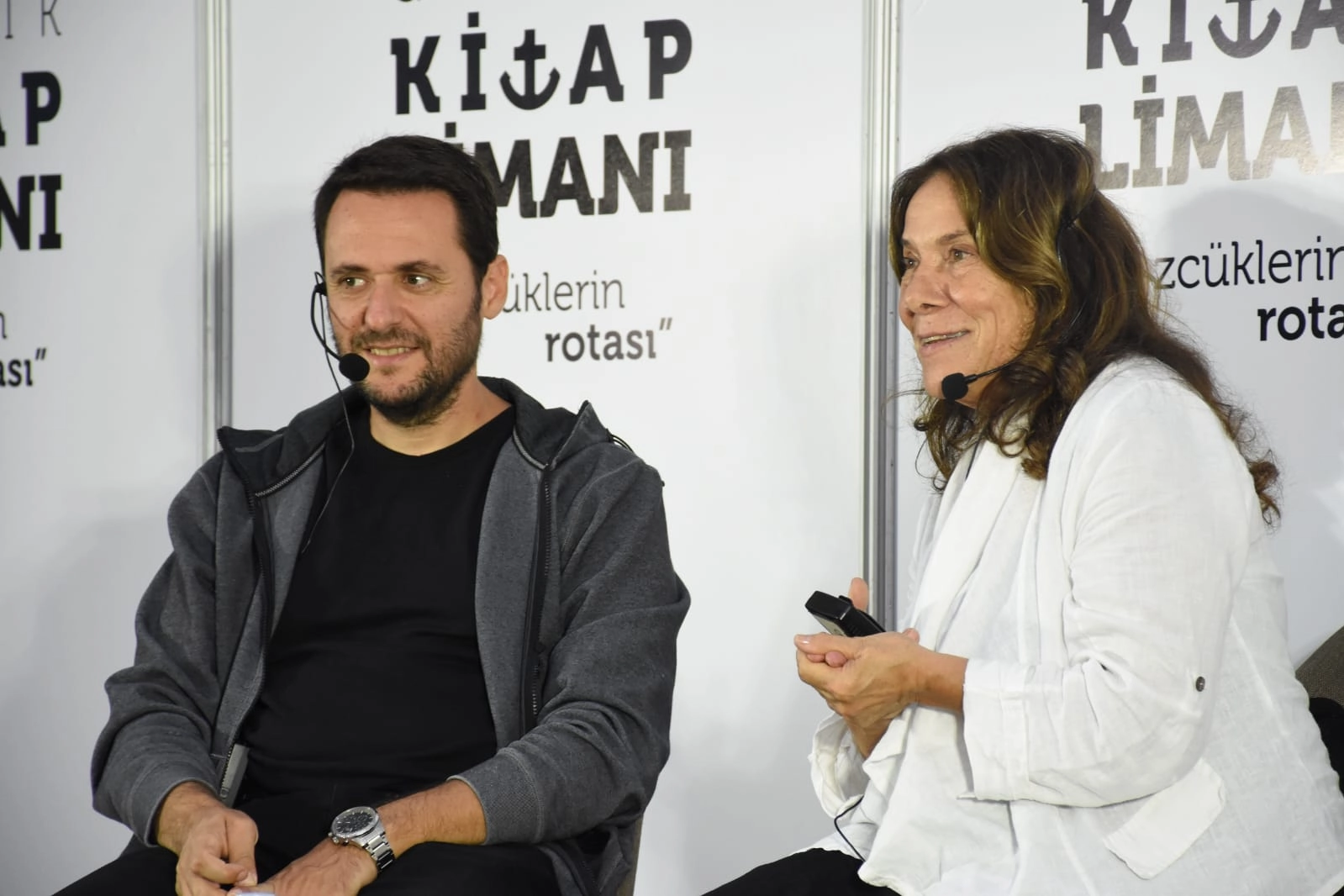 Türk edebiyatının usta kalemlerinden Latife Tekin ve romanlarıyla tanınan, eserlerinde toplumsal ile bireysel olanı buluşturan yazar Barış İnce, Gemlik Kitap Limanı'nda "Zamansız Hikâyeler" başlığıyla söyleşi gerçekleştirdi. Okurlarıyla buluşan yazarlar daha sonra kitaplarını imzaladı.