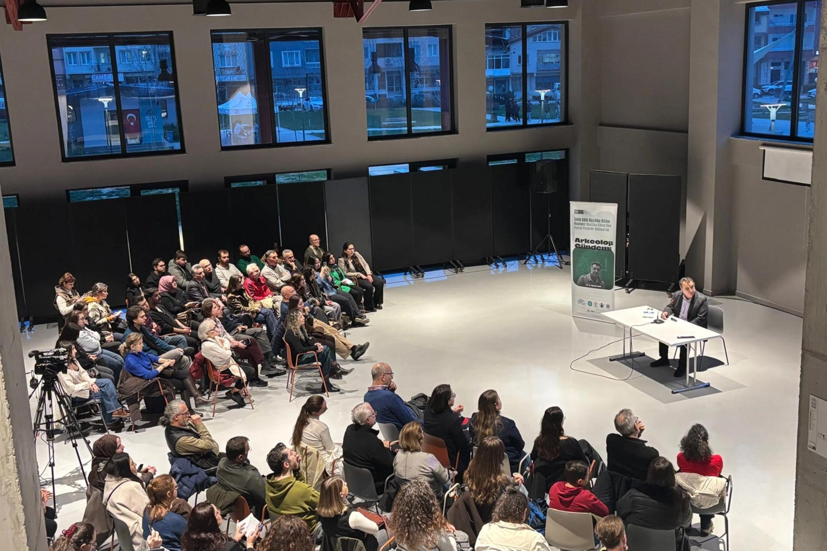 Nilüfer Belediyesi’nin tarih ve arkeoloji meraklılarını bir araya getirdiği Pancar Deposu’ndaki Arkeoloji Gündemi söyleşileri devam ediyor. Bu ayki buluşmada Bursa Uludağ Üniversitesi Arkeoloji Bölümü Anabilim Dalı Başkanı Prof. Dr. Mustafa Şahin, 2014 yılında bir hava fotoğrafıyla tesadüfen keşfedilen İznik Gölü’ndeki tarihi bazilikayı ve kentin tarihi katmanlarını anlattı. Etkinlikte, su altındaki yapının Hristiyanlık dünyası için bir dönüm noktası sayılan Birinci İznik Konsili ile olan bağı güncel veriler eşliğinde ele alındı.