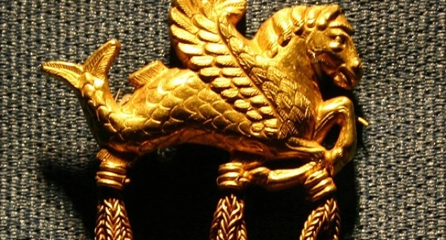 ''2005 yılında Uşak Arkeoloji Müzesi'nden çalınan Uşak bölgesine ait Karun Hazinesi eserlerinin en önemli parçası olan 'Kanatlı Denizatı' diye bilinen som altın ve milyonlarca lira değerindeki mücevher, Almanya'da bulundu, ele geçirildi. Türk ile Alman makamları arasında eserin Türkiye'ye ait olduğu konusunda mutabakat gerçekleşti. Yasal süreci takip ediyoruz. Adli makamlarımız, bakanlığımız ve Alman adli makamları bu süreci takip ediyor. Sanıyorum çok kısa süre içerisinde, biliyorum yılbaşından ya da yeni yılın ilk tarihlerinde Karun Hazineleri'nin en hayati parçalarından olan 'Kanatlı Denizatı'na Türkiye'miz yeniden kavuşmuş olacak.''