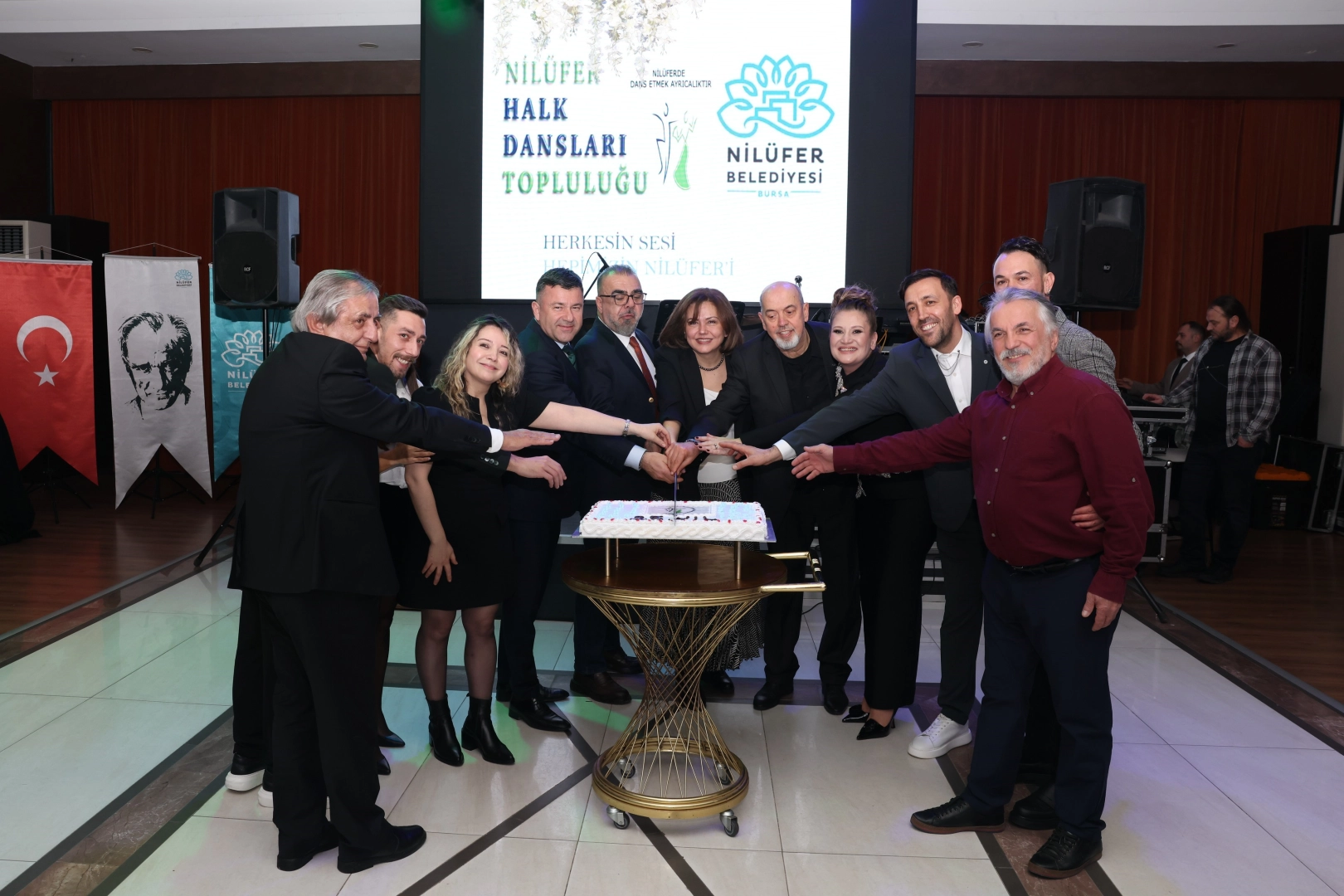 Nilüfer Belediyesi bünyesinde çalışmalarını sürdüren Nilüfer Halk Dansları Topluluğu, 25'inci yaşını kutladı. Karya Davet'te gerçekleştirilen 25. yıl özel buluşmasında, Nilüfer Belediye Başkan Yardımcısı Bukle Erman, topluluğun kurucu üyeleri, eğitmenler ve çok sayıda dansçı yer aldı.