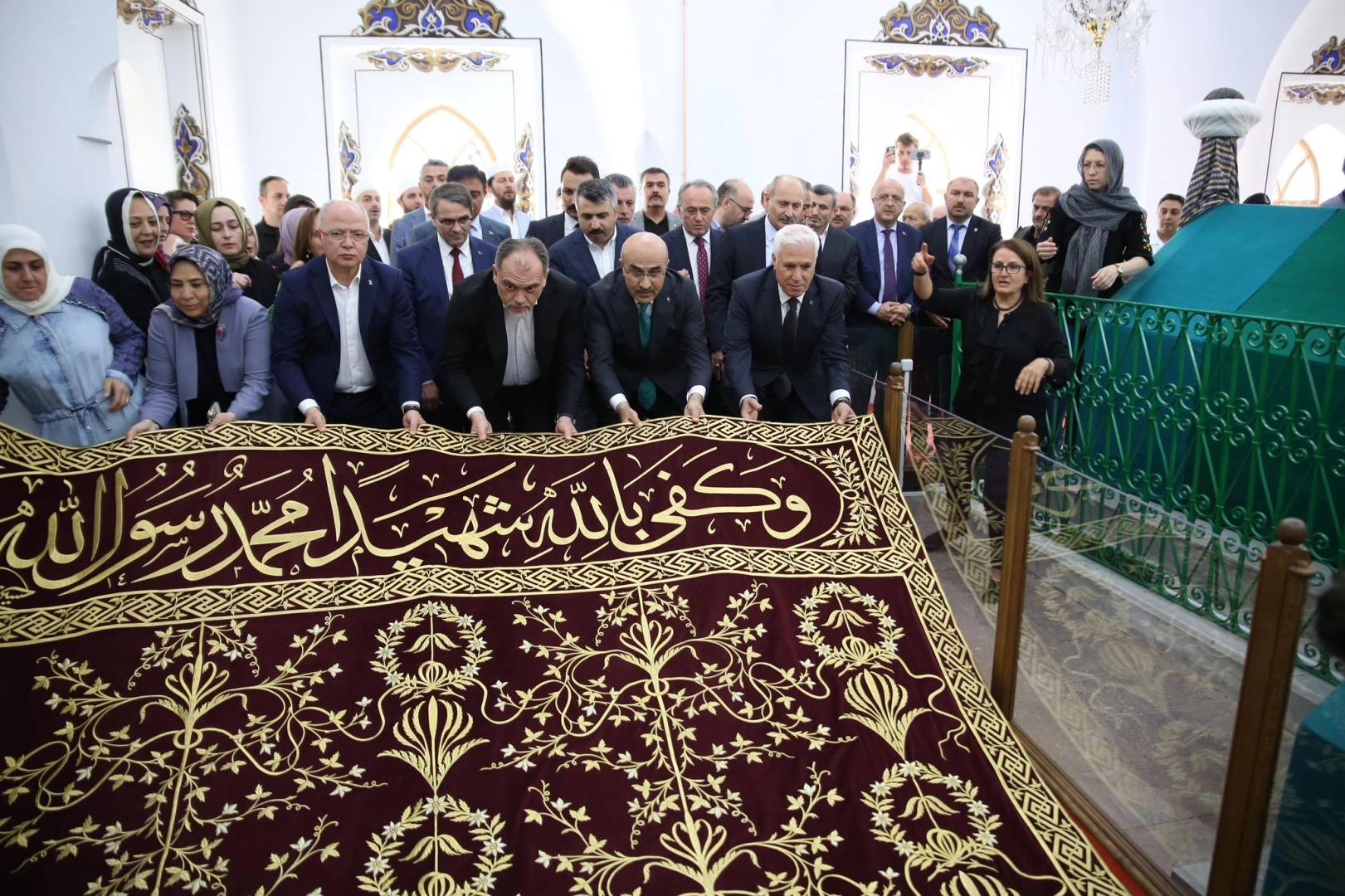 Daha sonra protokol üyelerince puşide örtüsü dualar eşliğinde sandukaya serildi.