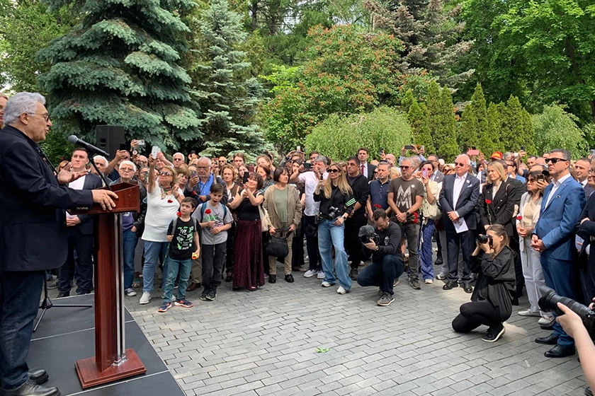 "Bu mezarlıkta 900 heykel var. Bunların çoğu kültür insanı. Bizim de en büyük kültür insanlarımızdan birinin burada yatıyor olması bizim için büyük gurur kaynağı. Türkçe’nin büyük şairi sözü çok doğru, çünkü bir terzinin elinde kumaş neyse bir sanatçının yazarın elinde de dil odur. Nazım Hikmet,Türkçe'yi Yunus Emreler'den alıp günümüze taşıdı ona yeni imkanlar kazandırdı" dedi.