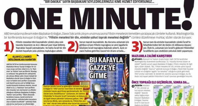 İşte Milli Gazete'nin, "Bir dakika sayın Başbakan! söylediklerinizle kime hizmet ediyorsunuz..." diyerek, "Filistin meselesinin bir din, etnisite ya da toprak meselesi olduğuna" ilişkin haberi: