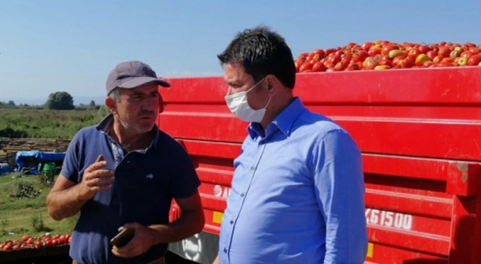 CHP Bursa Milletvekili Erkan Aydın, CHP Mustafakemalpaşa İlçe Başkanı Serda Tandoğan Kuru ve yönetimiyle birlikte Ayaz ve Yavelli Köylerinde domates üreticilerinin sorunlarını dinledi. Maliyeti 51 kuruş olan salçalık domatesin kilosunu 33 kuruştan satmak zorunda kaldıklarını söyleyen üretici dertli. Üreticinin sıkıntılarını dinleyen Erkan Aydın'a köylü, "Zaten maliyetlerimiz çok fazla birde bu sene ürünlerimiz para etmedi. Salça fabrikaları da fiyatları maliyetlerimizin çok altında tuttu" diyerek dert yandı.