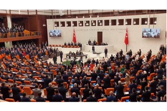 Ve elbette evrensel hukuk normlarında bağımsız, tarafsız, adil bir yargı düzenini mutlaka kazanacağız. O zaman yıllardır dinlemekten bıktığımız bu sesi, ekranlardan kürsülerden değil ama mahkeme salonlarında halkın önünde hesap verirken büyük bir dikkatle dinleyeceğimize de söz veriyorum. Tüm yurttaşlarımızı bir kez daha sevgiyle, saygıyla selamlıyorum, öfkeliyiz ama öfkemizin umuda döndüğü bir andayız, şundan eminiz bugün son kez TBMM Erdoğan’ın açılış konuşmasıyla yeni bir döneme başlıyor, bir daha böyle bir sahne yaşamayacağız!"